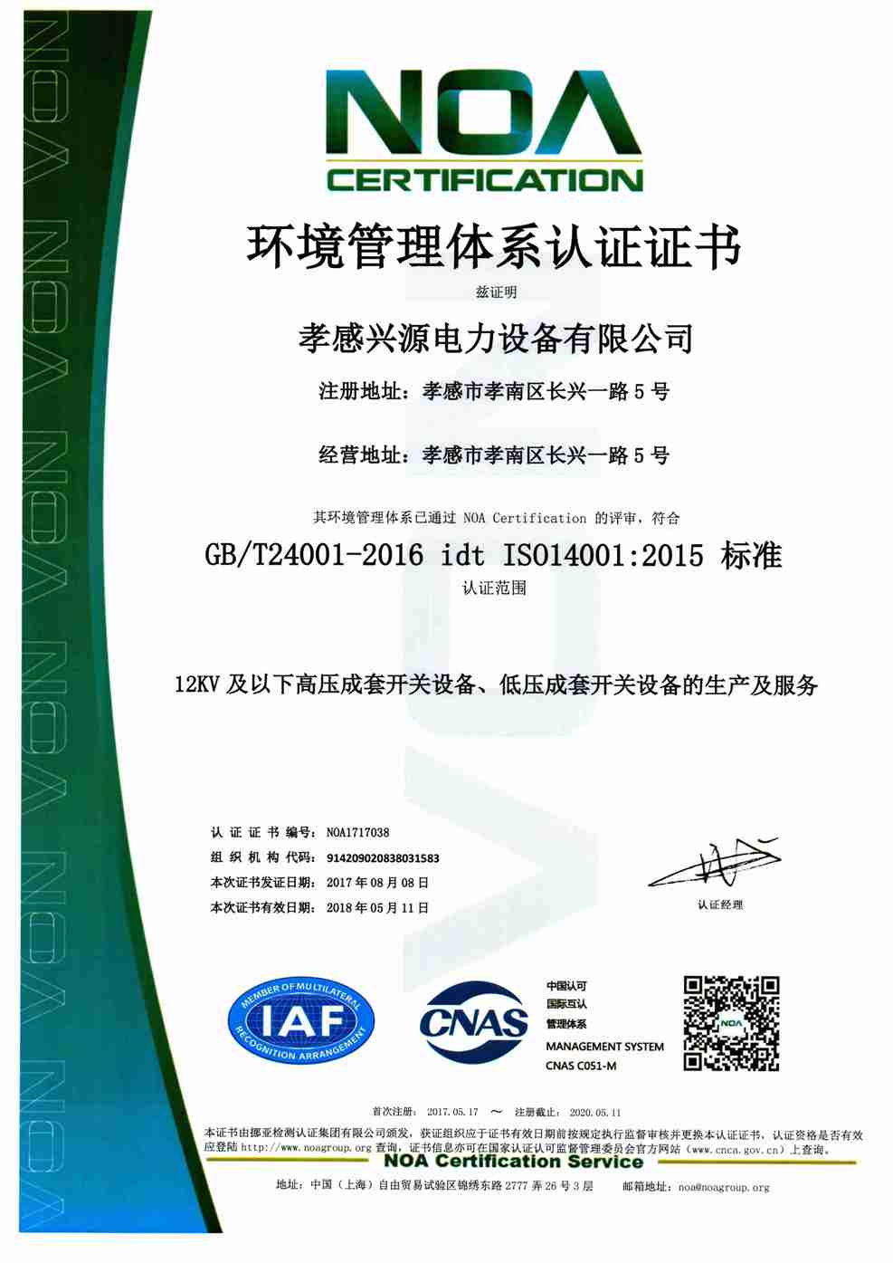 環(huán)境管理體系證書(shū)